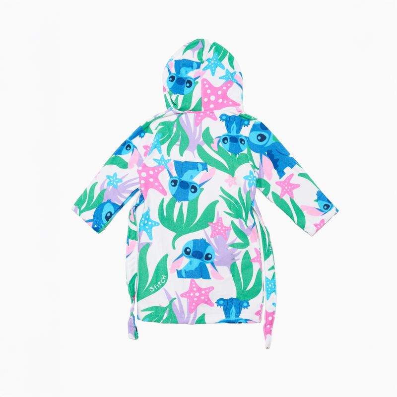 "Nuestras batas de baño son ideales para después de la ducha, al salir de la pile o simplemente para estar cómodos y abrigados en casa antes de ir a la cama. Características del producto: • Capucha espaciosa para una calidez total. • Cinturón para un mejor ajuste Con diseños súper coloridos con sus personajes favoritos de Stitch Tienen una máxima absorción y secado rápido