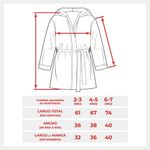 2-3 años: 61 cm largo total; 36 cm ancho; 32 cm largo de mangas