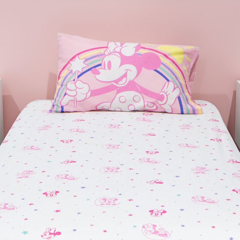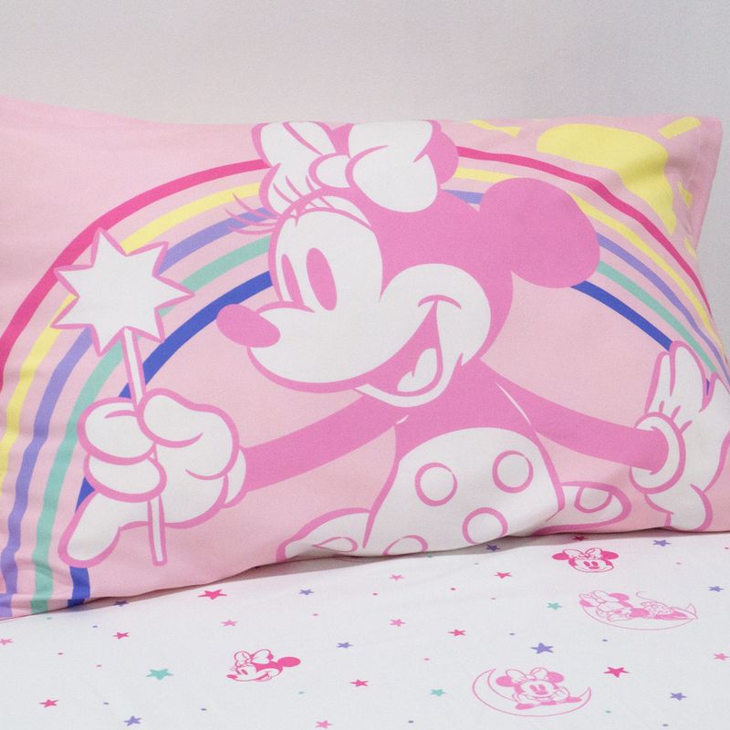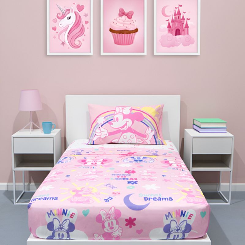 El juego de Sabana incluye tres piezas. Cada pieza tiene un diseño único y divertido con su personaje favorito Minnie Mouse. La funda de almohada es reversible para combinarla como quieras. Máxima suavidad para descansar, jugar y soñar.