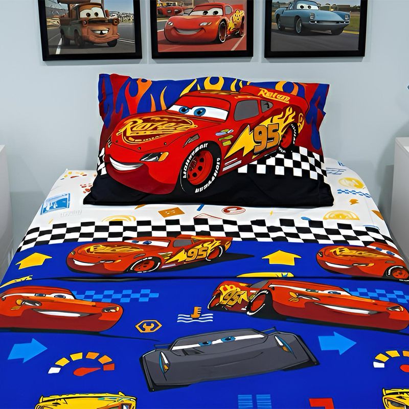 El juego de Sabana incluye tres piezas. Cada pieza tiene un diseño único y divertido con los amigos del Rayo Mc Queen. La funda de almohada es reversible para combinarla como quieras. Su nueva tela ultra soft brinda el máximo confort de suavidad al tacto.